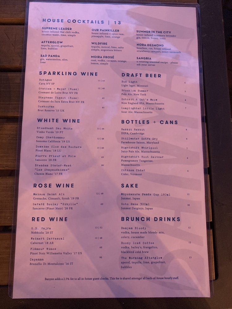 Introducing the menu at Banyan Bar + Refuge, located at 553 Tremont St in Boston, MA. This trendy and casual restaurant offers a variety of options for everyone, including pescatarian, vegan, and vegetarian dishes. With a full bar, happy hour specials, and a pool table, Banyan Bar + Refuge is the perfect spot for a night out with friends or a special dinner. The menu features dishes that are both delicious and unique, showcasing the creativity and skill of the chefs. From the heated outdoor seating to the gender-neutral restrooms, Banyan Bar + Refuge strives to create a welcoming and inclusive atmosphere for all customers. Don't miss out on the opportunity to experience the delectable flavors and inviting ambiance at Banyan Bar + Refuge.